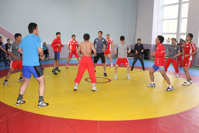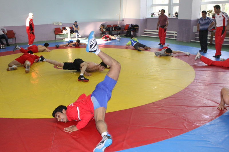 روسیه برگزار شد زیر نظر مربیان خود ابتدا حرکات نرمشی را انجام دادند و سپس کشتی گیران به مرور
